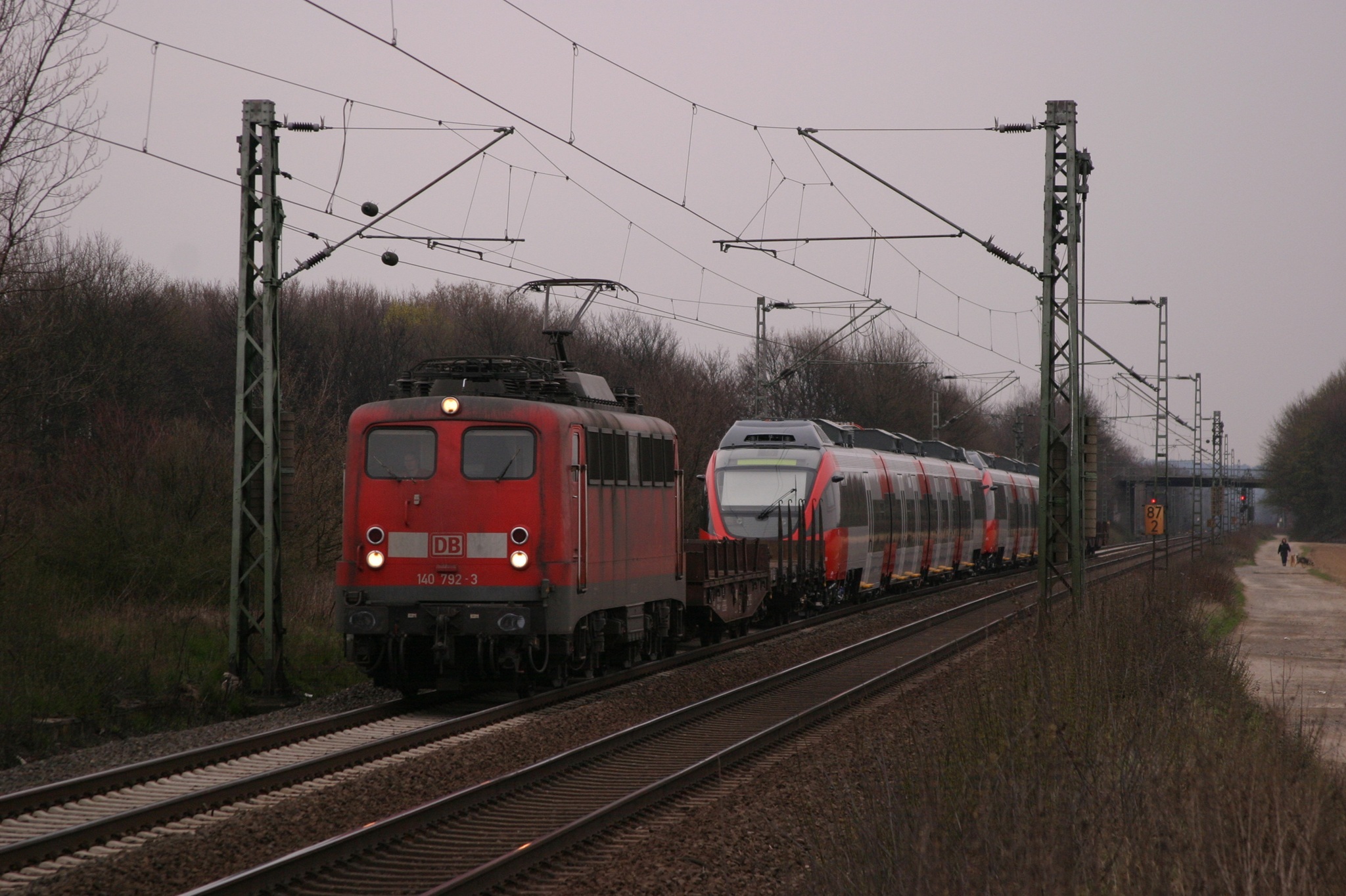 11. April 2006 - DB 140 792-3 mit für die ÖBB bestimmte 4024 083-0 und 4024 077-2 im Schlepptau bei Menden (Rheinland) unterwegs Ri. Koblenz.